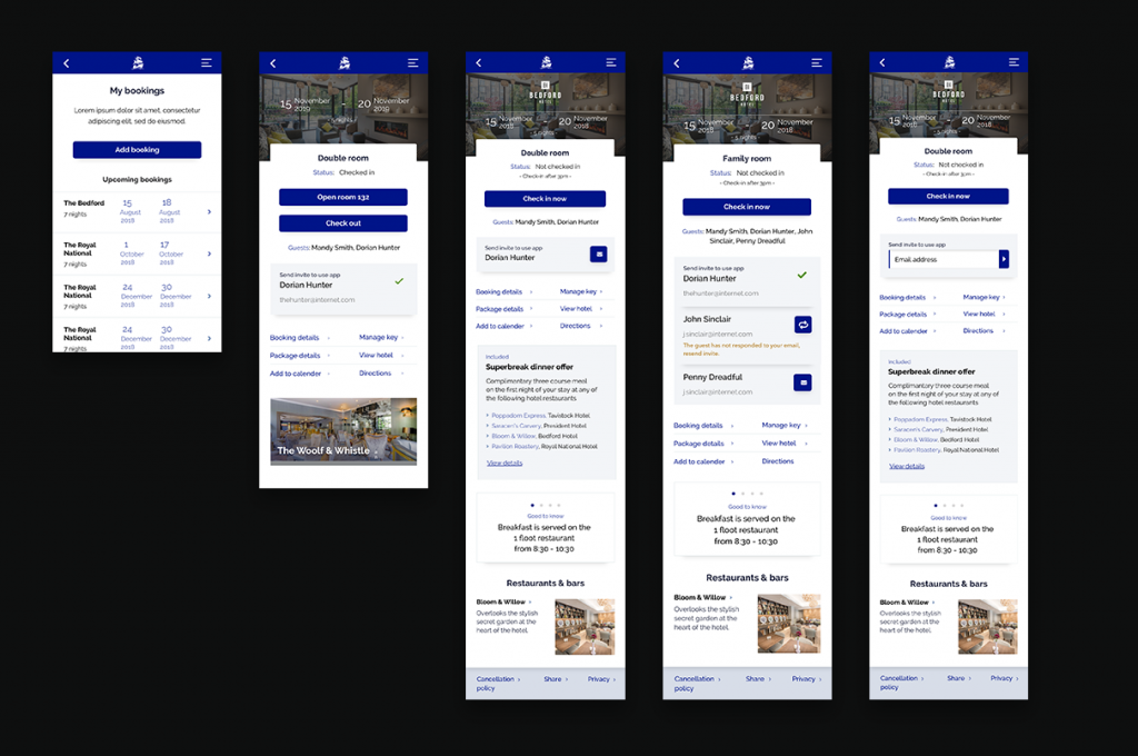 The app was designed to seamlessly bridge the gap between the website and the guest’s booking experience. Guests can manage their reservations, check in and out, access hotel information, and even use the app as a digital room key. It’s fully white-labelable, allowing it to adapt to the branding of any of the seven hotels in the group.