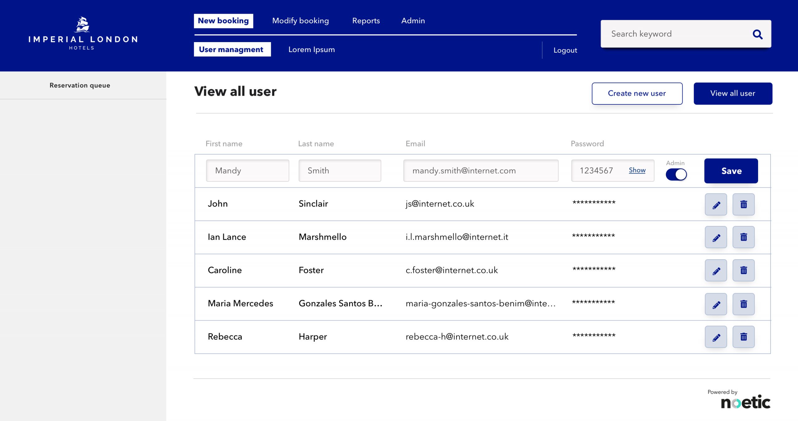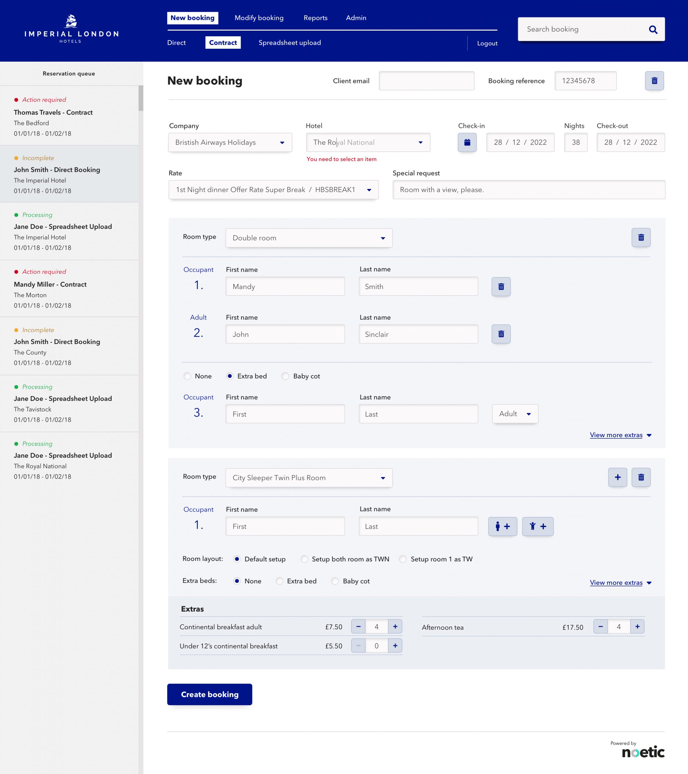As part of the redesign, I focused on the agent booking platform – a crucial tool in the highly competitive hotel room market. Imperial Hotel London worked with a network of exclusive agents and an in-house team to manage a high volume of room reservations. While their platform had strong potential, it was outdated and cumbersome.
