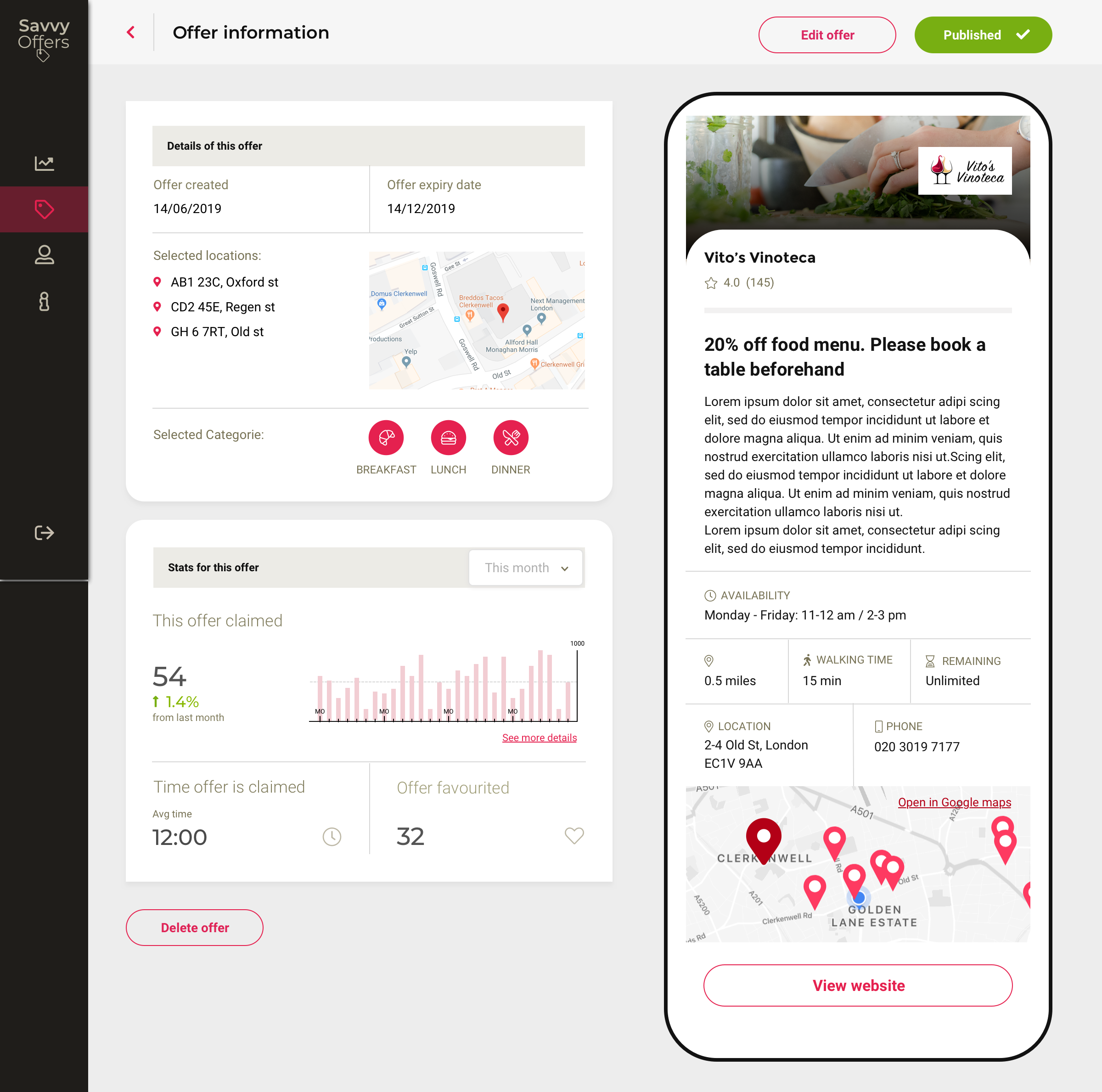 Developing a custom CMS for the offers section of the Savvy software package, enabling third-party vendors to upload, edit, and monitor their offers in real-time, seamlessly integrating with the Savvy mobile app.